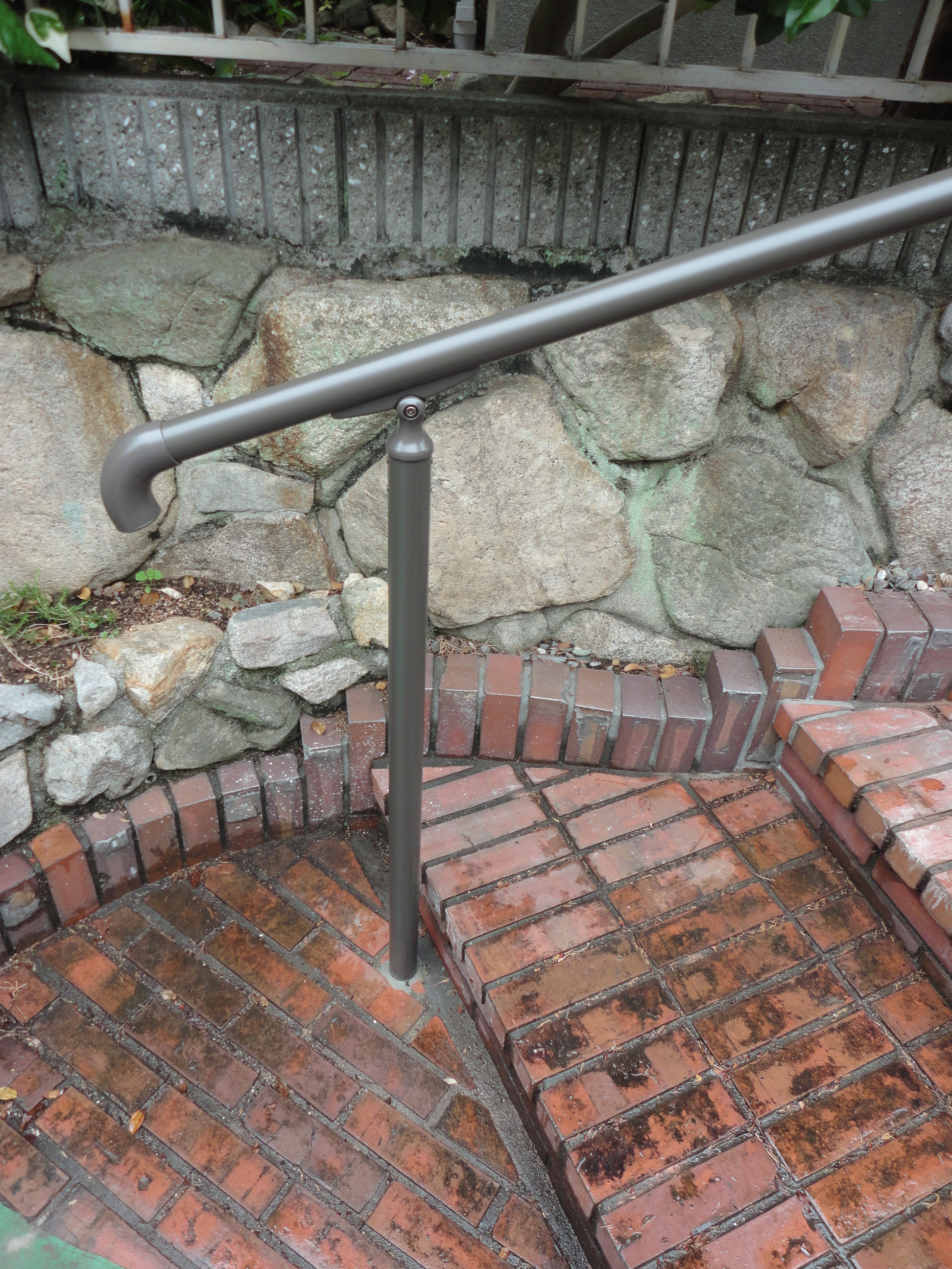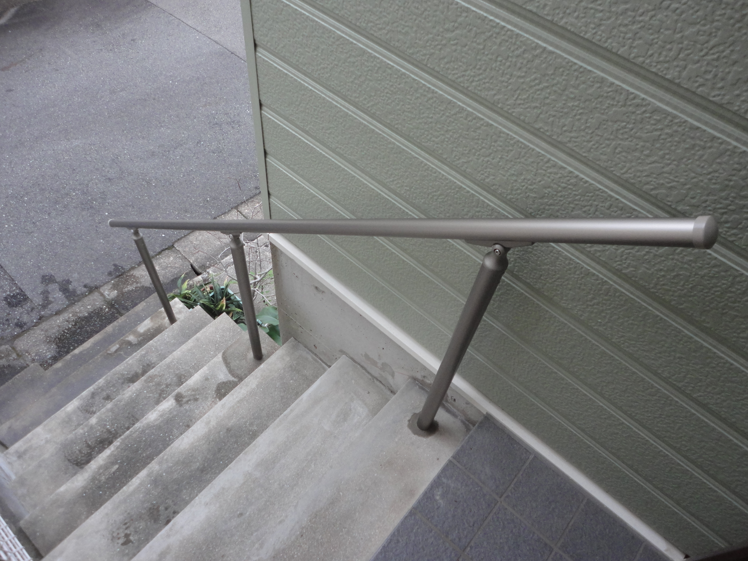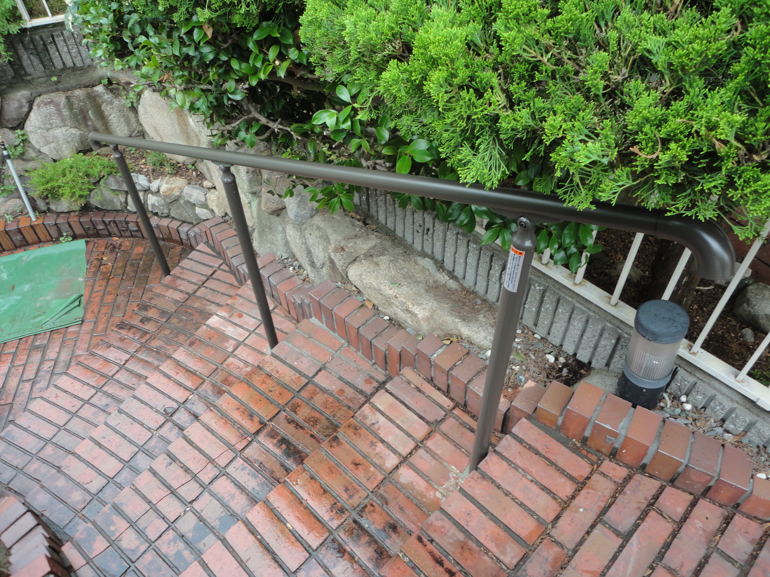 以前ご近所で工事をさせて頂きましたお客様からのご紹介で、階段での転倒によりお怪我をされたため取付をお考えになられたそうです。幸いけがもあざができた程度で不幸中の幸いでしたが、もっと早く取付をすれば良かったとお話されておりました。