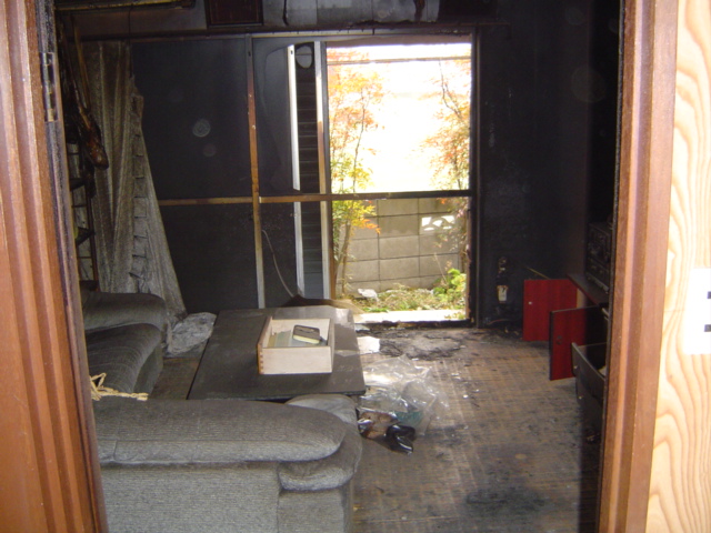 | 現場状況 | 幸い建物自体には火が回っておらず躯体等は問題なさそうですが、ボヤとはいえ復旧には時間が掛かりそうです。 |