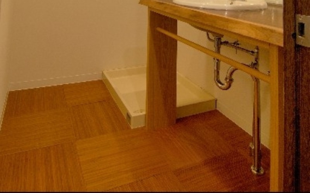 お客様のこだわりがありほぼほぼご指定頂いた内容で施工させて頂きました。床フローリングはリビングや廊下はそのまま使い、和室を洋室に替える為その部分を施工いたしました。また洗面室にはクッションフロアではなく竹素材のタイルを施工させて頂きました。玄関も石目のタイルを張り直しを致しております。